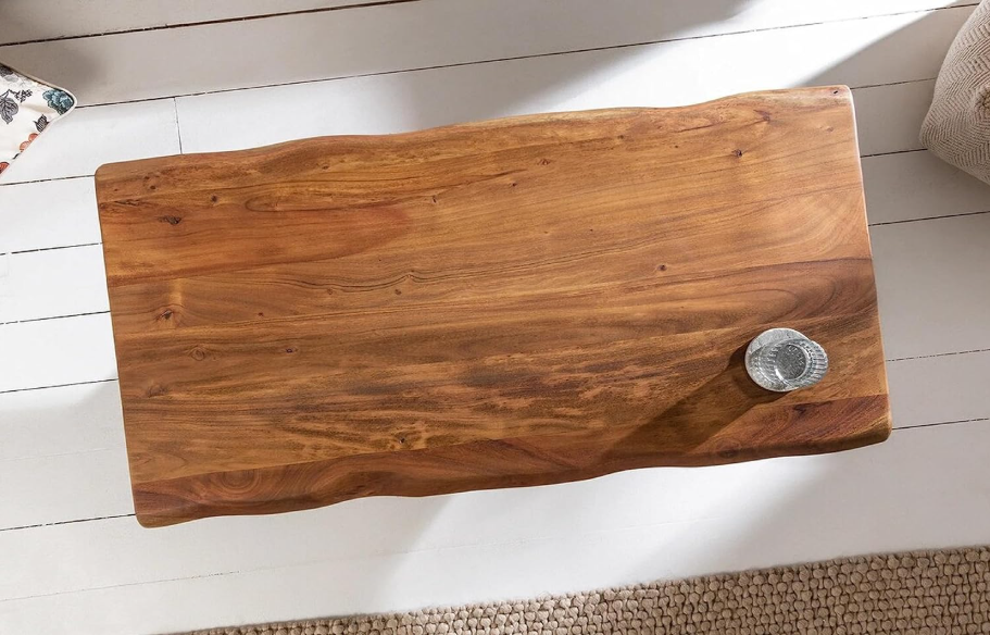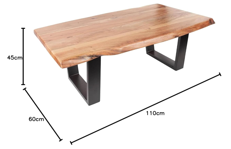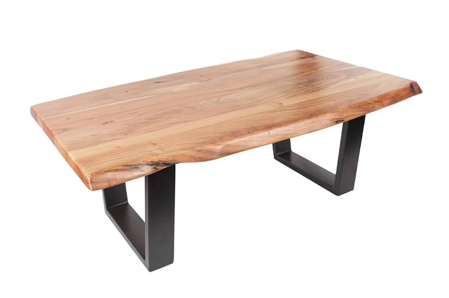 Live Edge Solid Wood Coffee Table | Rectangle Shape with Iron Legs | Acacia Wood,| Ideal Centre Table for Living Rooms Ideal for Home Decor